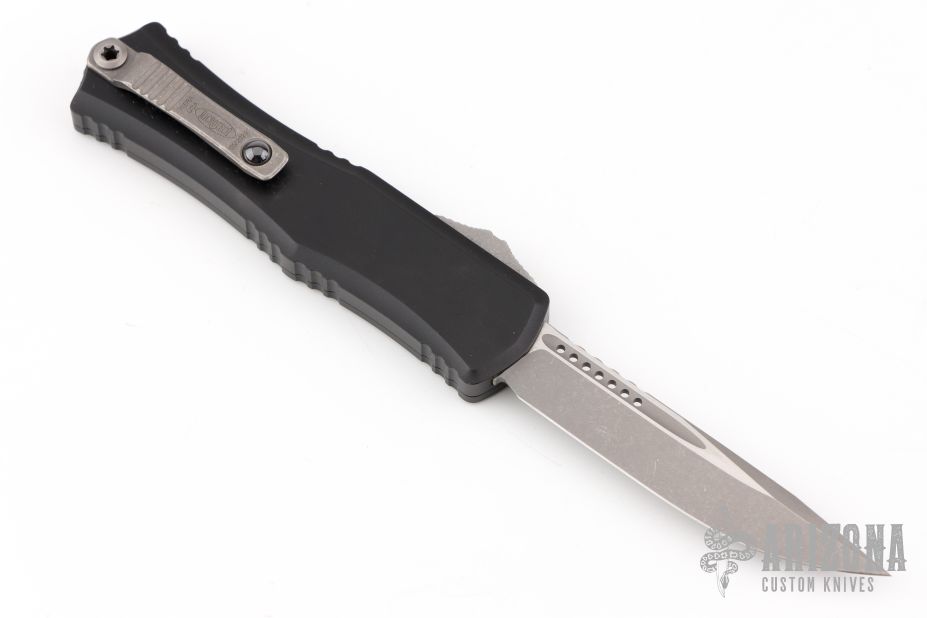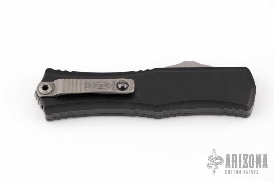 The Microtech Mini Hera II sets a higher standard for the perfect blend of aesthetic and utility that was introduced by the original Hera. Smaller than both the origianl hera and the Hera II, the mini Hera II has a streamlined design of the original with dramatic improvements. Redesigned 6AL4V pocket clip and glass breaker. The ultra-smooth action of the reengineered dual fuel drivetrain allows for effortless deployment, and the innovative button pocket design reduces friction and facilitates debris displacement. The size and practicality of the mini Hera II combined with its updated style and functionality make this the perfect addition to your everyday carry. Includes the original box and papers. Excellent Condition.