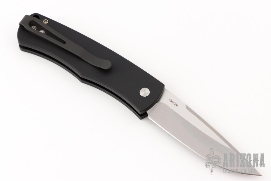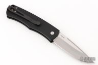 This Magic BR-1 Bolster Release Automatic from Pro-Tech Knives features a drop point stonewashed 154-CM blade with swedge. The handle has a black aluminum frame with checkered bolster. Black coated stainless steel clip is positioned for tip up carry. Lanyard hole in the pommel. Comes with original box and papers. Excellent condition.