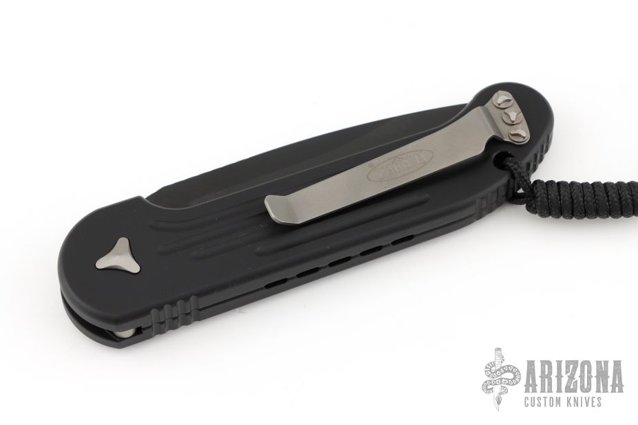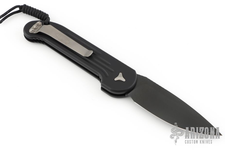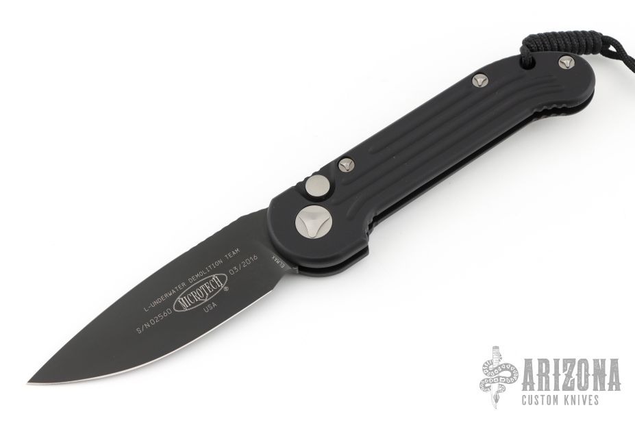 This LUDT side opening automatic by Microtech has a black blade with a standard edge and a black aluminum frame. Stainless steel clip. Dated 03/2016 s/n 02560. Comes with original box and papers. Excellent condition.