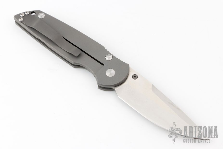 The custom TR-3 Integrity folders are built in very small batches from the highest possible quality materials. Solid titanium frames, custom hardware and thumb studs, the fit and finish is superb! Smooth one hand opening and the solid locking of the .125" titanium frame, even the pocket clips are custom made titanium. Comes with original box, sheath and papers. Excellent condition.