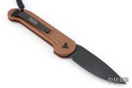 This LUDT side opening automatic by Microtech has a black finished blade with a standard edge and a contoured tan aluminum frame. Stainless steel clip. Dated 09/2018 and serial number 09419. Comes with original box and papers. Excellent condition.