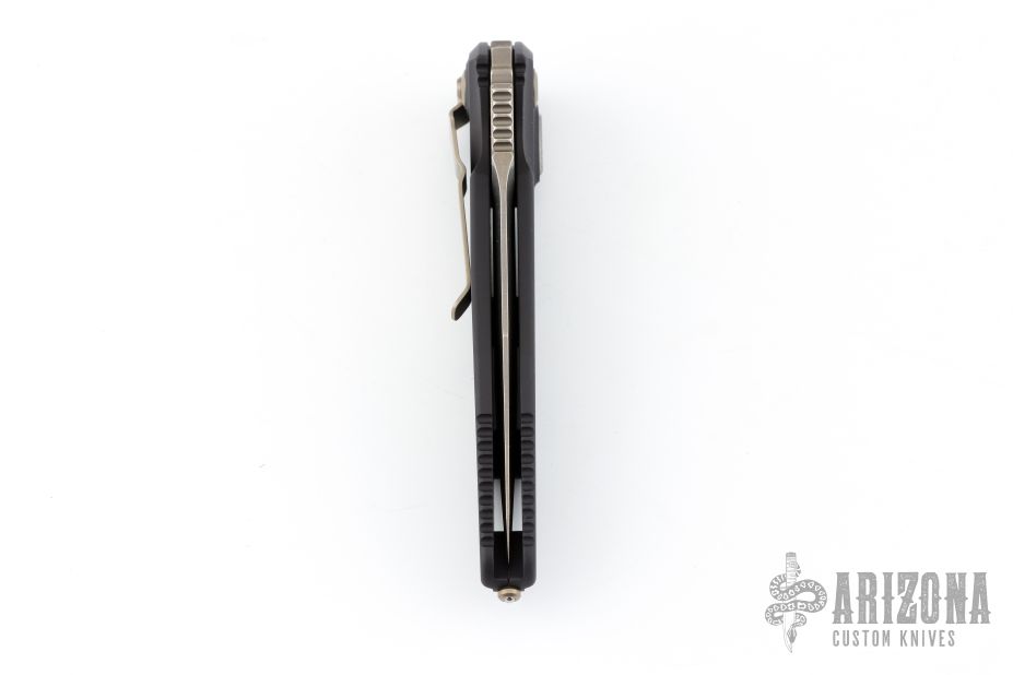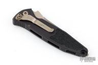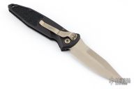 This Socom Elite Auto from Microtech has a bronzed and stonewashed blade with notched thumbrest. The handle has a black aluminum frame with non-slip rubber inserts and a tip down bronzed stainless steel clip. Dated 05/2018 and S/N 034. Excellent condition.