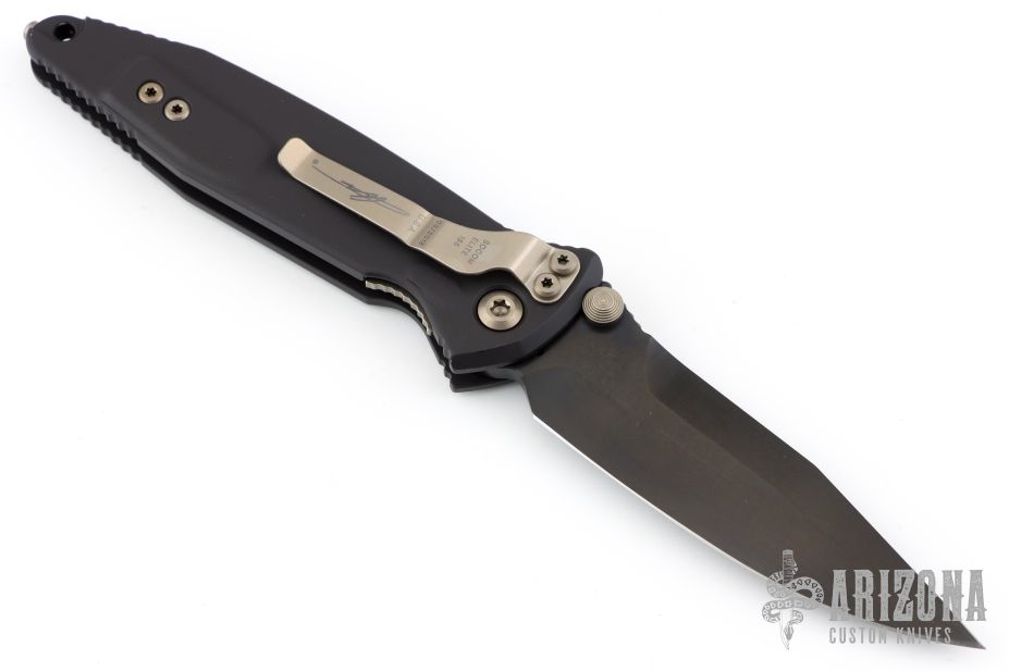 This Socom Elite from Microtech has a DLC blade with dual thumbstuds and notched thumbrest. The handle has a black aluminum frame with non-slip rubber inserts and a tip down bronzed stainless steel clip. Dated 03/2018 and S/N 165. Includes original box and paperwork. Excellent condition.