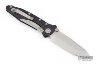 This Socom Delta by Microtech Knives has a tumble finished tanto blade with a plain edge and a contoured black aluminum frame. Dated 09/2015 and serial number 4300. Nice detent, lockup and blade seating. Comes with original box and papers. Excellent condition.