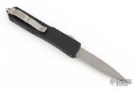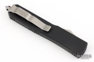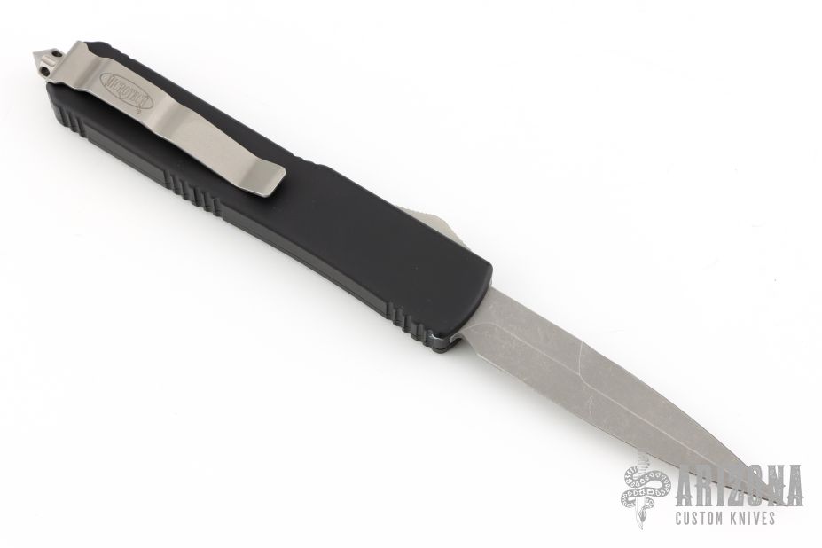 This knife from Microtech was the 2016 Blade Show Special. It has a single edged bayonet blade with an Apocalyptic finish. The handle is black aluminum with a tip down bead blasted stainless clip and glass breaker at the butt. Comes with original box and papers. From 2016 Blade Show. Excellent condition.