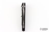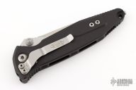 This Socom Elite M/A from Microtech has a satin finished blade with notched thumbrest and dual thumbstuds. The handle has a black aluminum frame with non slip inlays with stainless steel liner and tip down clip. Serial number 1401 and dated 06/2018. Excellent condition. Comes with original sheath, box and papers.