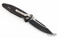 This Socom Elite from Microtech has a black/satin blade with dual thumbstuds and notched thumbrest. The handle has a black aluminum frame with non-slip rubber inserts and a tip down stainless steel clip, black hardware. Dated 04/2018 and S/N 0860. Includes original box and paperwork. Excellent Condition.