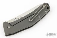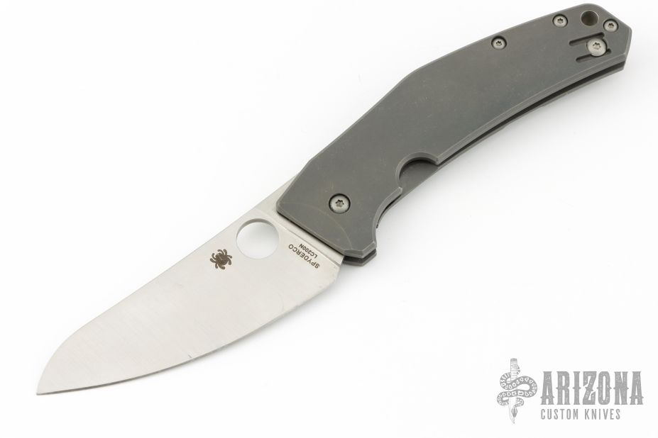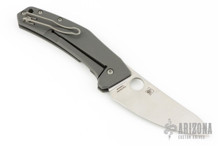 This C211TIP Spydie Chef by Spyderco features a satin finished drop point blade with thumbhole. The handle is comprised of a blasted and tumbled titanium frame over barrel spacers. The tip up clip is reversible for left or right hand carry. Comes with original box and papers. Has a couple light scuffs and scratches, great condition otherwise.