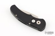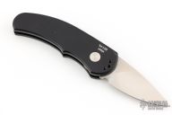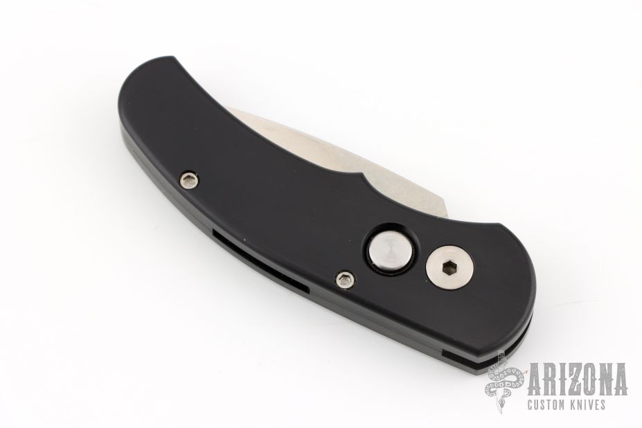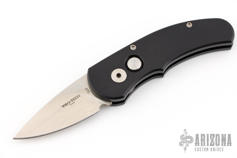 This is a Runt J4 "Jalapeno" by Pro-Tech featuring a black handle and a satin blade. Coil spring. California legal. 2008 Prototype. The clip is missing, Has a couple scratches, the clip is missing, otherwise good condition.