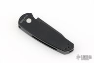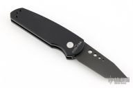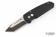 This Runt 3 by Pro-Tech knives has a two-tone tanto blade and a black aluminum handle. Coil spring. California legal. Has a couple small dings on the frame, the clip is missing, otherwise good condition.
