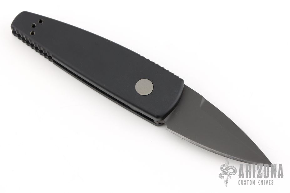 The California legal (blade is less than 2 inches) Pro-Tech Stinger features a precision ground spear point blade and milled ridges for extra grip in the spine and belly of the nicely contoured handle. The handle is hand satin finished prior to anodizing. Solid button release opening and closing plus compact, lightweight construction makes the Stinger a very nice automatic. Has a couple light scuffs, the clip is missing, otherwise good condition.