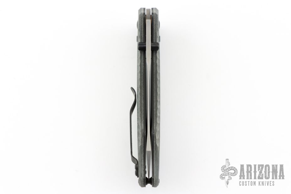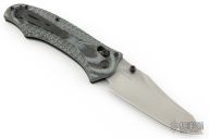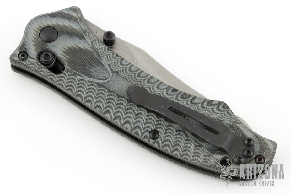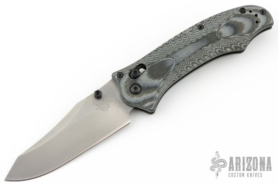 This 950 Axis Lock Rift from Benchmade features a clip point matte finish blade with swedge and dual thumb studs. The handle is comprised of machined black/white G-10 with black coated stainless steel liners and reversible tip up pocket clip. Excellent condition. Comes with original box and papers.