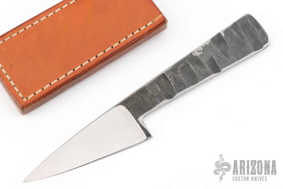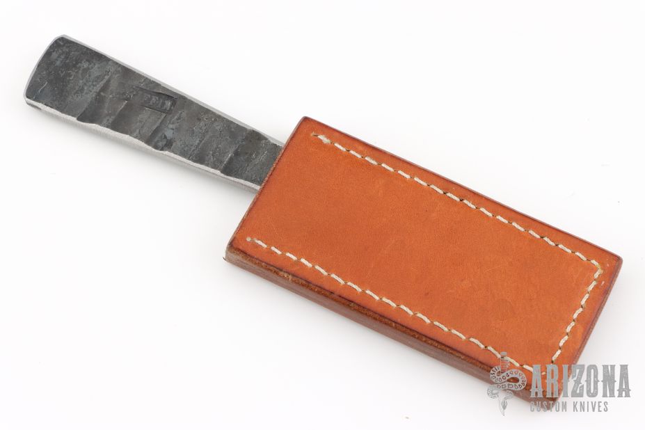This knife by Will Griffin features a full flat ground blade with integral forged handle, .191" blade stock and 1.149" blade depth. Forge scale finished handle. Has a distal taper. Comes with a brown leather sheath. Excellent condition.