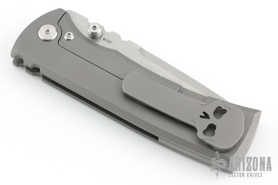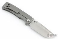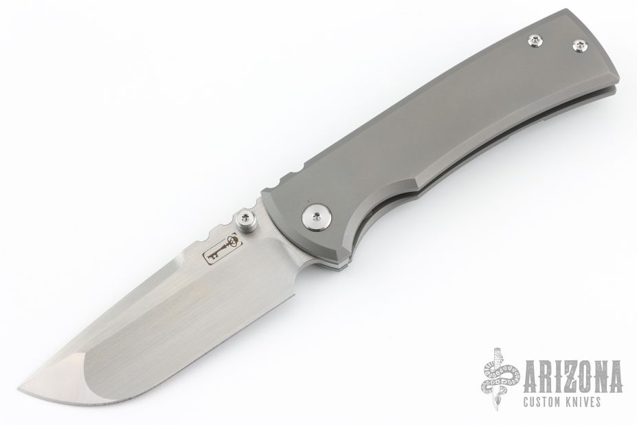 This Chaves Ultramar Redencion features a hand sanded satin finished blade with the Chaves logo. The handle is made up of stonewashed titanium, skull pocket clip (positioned for tip up carry), and a matching titanium backspacer. Comes with original box. Excellent Condition.