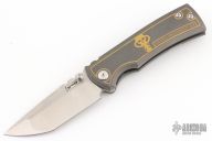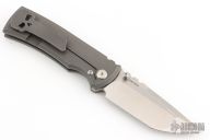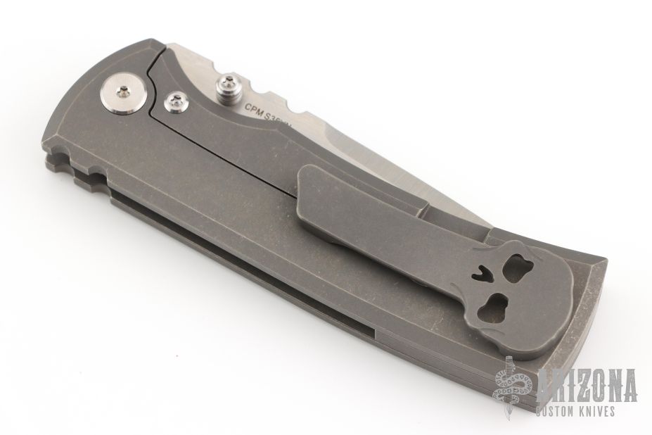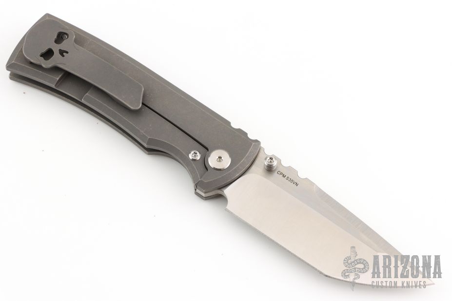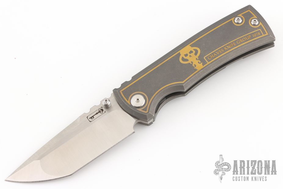 This Chaves Ultramar Redencion Tanto features a satin finished blade with the Chaves logo. The handle is made up of tumbled titanium, skull pocket clip (positioned for tip up carry), and a matching titanium backspacer. Blade is centered when closed, and locks up with no play. Comes in the original packaging.  Excellent Condition.