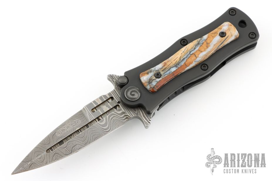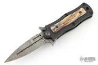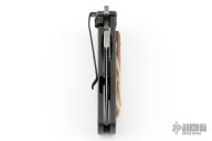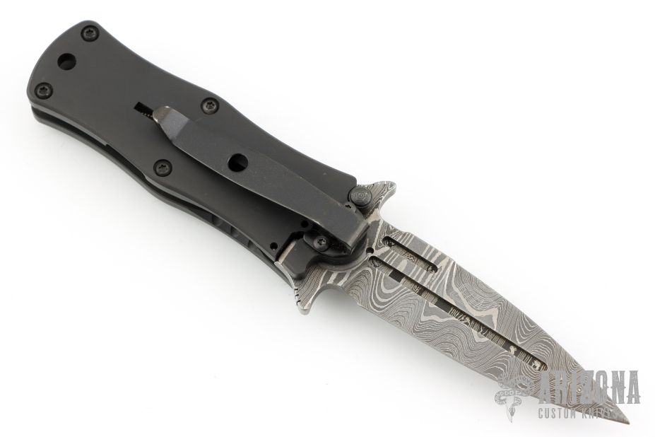 This Madd Maxx framelock flipper by Darrel Ralph features a Damascus blade and DLC Frame. Black stainless steel clip, tip down carry, reversible up or down. Solid lockup, detent and blade seating. Excellent finish work. Comes with original box, and zipper case. Has scuffs and scratches, great condition otherwise.