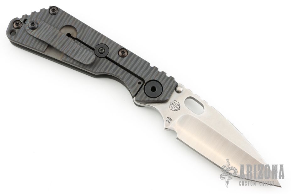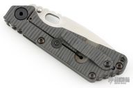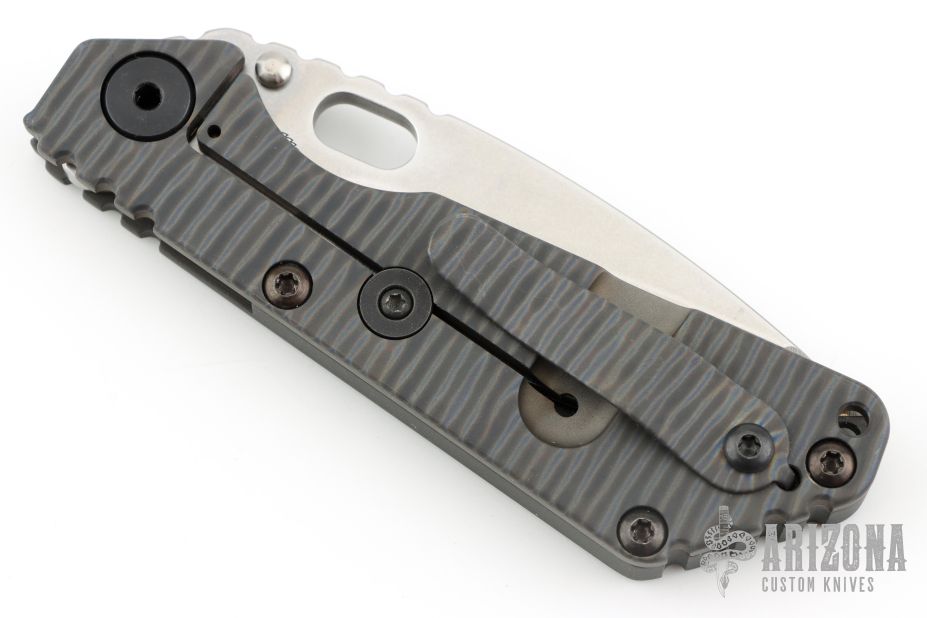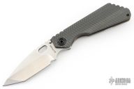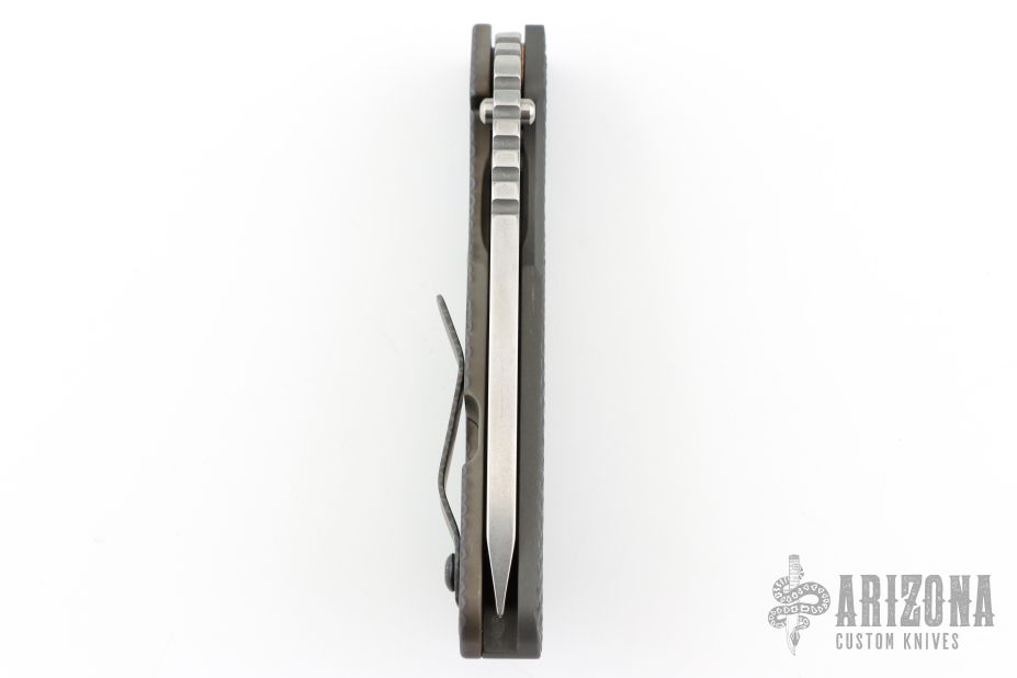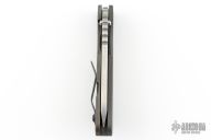 This MSC SNG framelock folder by Mick Strider features a stonewashed tanto blade and a dimple pattern Battleship grey aluminum and flamed titanium frame and tip up titanium clip. Includes Hinderer "Lock Bar Stabilizer" for maximum reverse lock retention. Nice detent, lockup and blade seating. Has a couple light scratches, otherwise excellent condition.