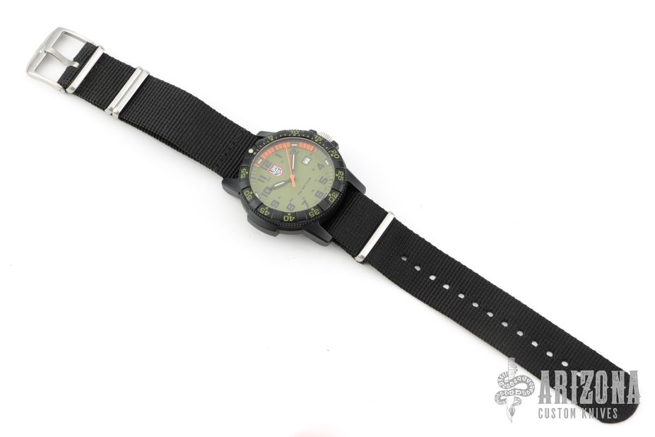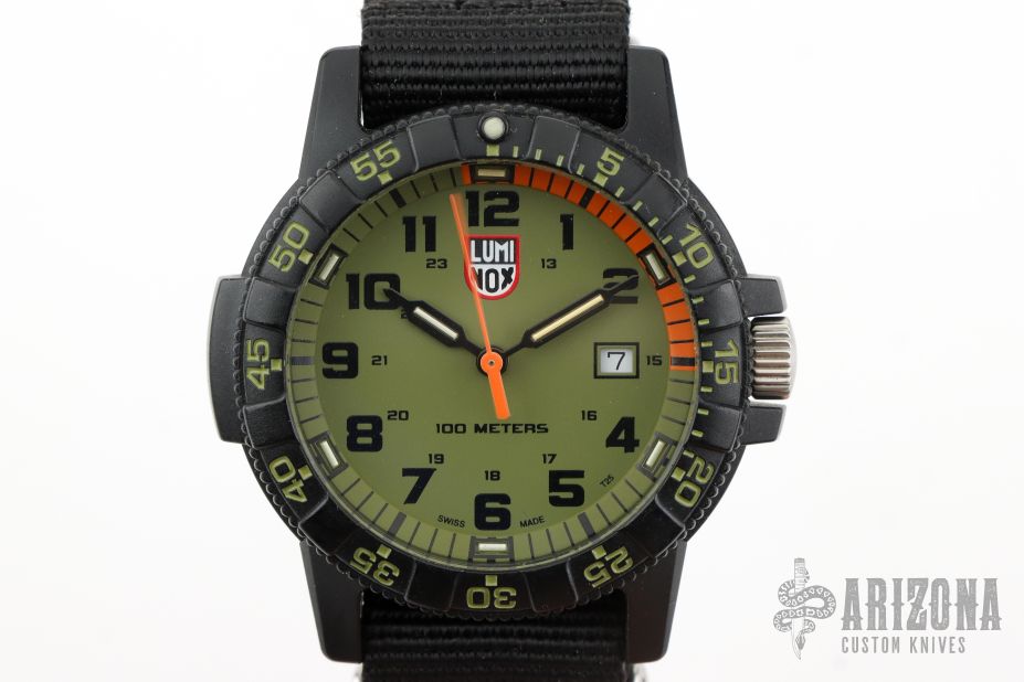 The Leatherback Sea Turtle Giant Turtle watch gets it's name from the design of the watch, the classic Luminox case with the proteced crown balanced by an opposite outcropping, resembles the shape of a turtle. The 44mm case is made of durable and lightweight signature CARBONOX™ and is water resistance up to 100 meters. The green dial with orange accents provides highlights. Its proven Luminox Light Technology lighting system guarantees self-powered readability in the night. "Always Visible" for 25 years.