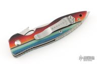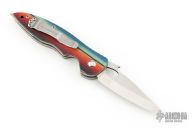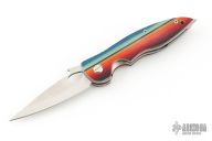 This knife by Emerson has been fully customized by Andrew Charlet. It features a satin finished blade with swedge, thumbhole and wave feature. The handle has canvas micarta scales, custom thick titanium liners and a notched titanium backspacer, black stainless steel tip up clip and lanyard hole in pommel. Comes with original box and papers. Excellent condition.