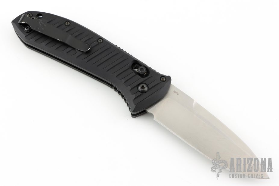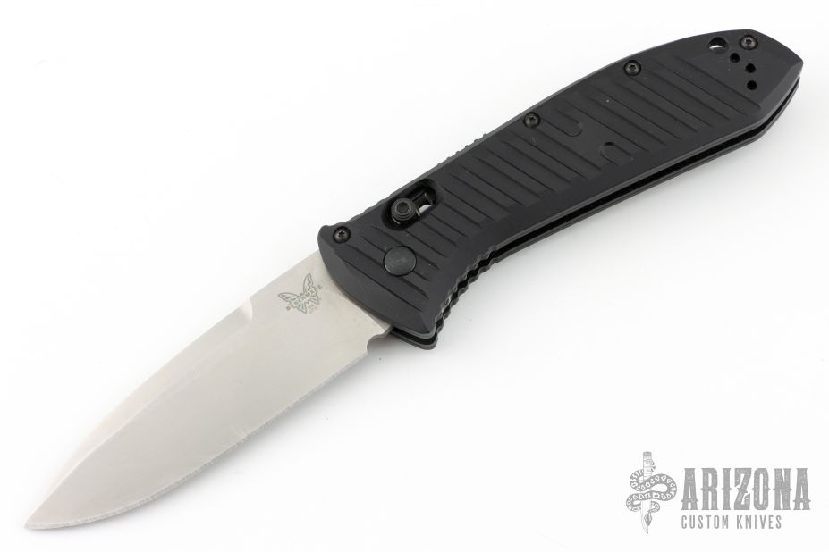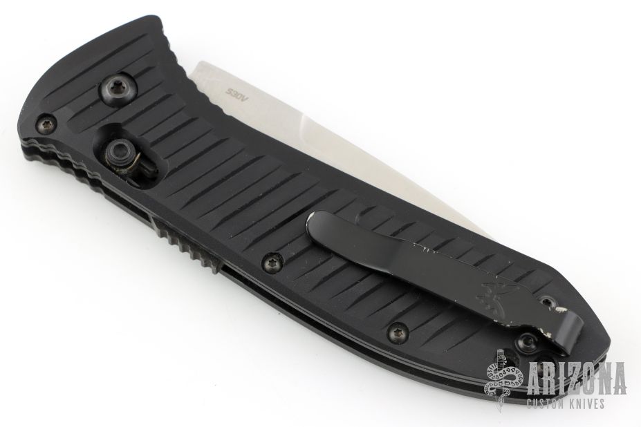 This automatic Presidio II model sports a black aluminum handle and a black finished blade. Benchmade has updated their legendary Presidio model with significant ergonomic and performance upgrades. This combat legend has a black anodized 6061-T4 billet aluminum handle with Benchmade's AXIS lock system for effortless one-handed opening and closing. Milled grooves in the handle improve grip while adding a modern flair to the design. The Presidio II has a slightly larger blade and handle that is built to perform well as a tactical or everyday carry knife. Item includes a Cordura sheath with snap retention and a Malice Clip. 6061-T6 billet aluminum handle offers a tough build without weighing you down. Dual thumb studs, reversible pocket clip, and an AXIS® lock mechanism provide a fully ambidextrous design. Blade is made from CPM-S30V steel for maximized strength and cutting performance.