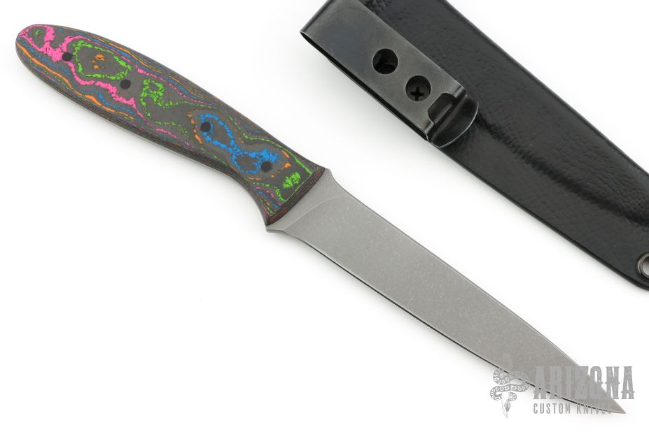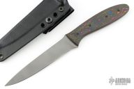 The overall mission is to offer a variety of high performance, handmade knives from kitchen to outdoors to self defense pieces. I do things the right way, one piece at a time. I am meticulous in my material selection, heat treating and effort in the details to offer people the best knives I can. As someone who enjoys the craft of knifemaking and has a lot of interests, I make knives for a wide variety of uses. Generally these are broken down into two simple categories: -Field Grade: Everyday working knives made to perform with good geometry, heat treat and materials suited more towards ease of maintenance and durability. CPM154 is the most common steel used as it is the best all-around steel for most situations. Sometimes, steels like CPM3V or PSF27 will be offered as well. A stonewash finish is the most common finish I offer on Field Grade pieces. -Signature Grade: My opportunity to explore and deliver a higher level of old world craftsmanship. The performance, high quality heat treat as the working knives, but with more premium features, more striking cosmetics and the use of more rare materials. Finishes can vary, from painstakingly hand rubbed and polished metal, high gloss satin finishes and pattern acid etched finishes. Blades may be stainless, or carbon steel with visible hardening lines-commonly referred to as a hamon. Thicker stock will often come with a tapered tang. You will also see hand sanded handles made from exotic woods, vintage phenolic materials, and other specifically selected accouterments.