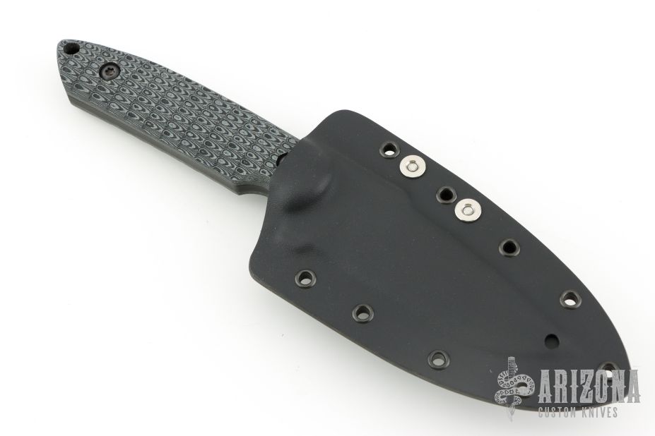 DLC Black coated 52100 blade, 2-color black and grey G-10 Handle, Kydex Sheath with G-Clip