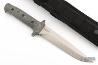 The LARGEST chapter in our Walter Brend #1 Design Series - The Combat Fixed Blade is here! Made with a durable full tang type of construction out of 0.191" thick 154-CM Stainless Steel - This knife is a TANK of a cutting tool! According to Walter Brend the design of this blade is the "perfect blend of a dagger and a clip point". When you hold the Brend #1 Combat in your hand - you will understand. The handles on the Brend Combat are 3D cnc machined and then individually hand contoured and finished for a functional custom knife type grip. Each Brend #1 Combat comes complete with an American Made SPEC OPS Brand Combat Master sheath.