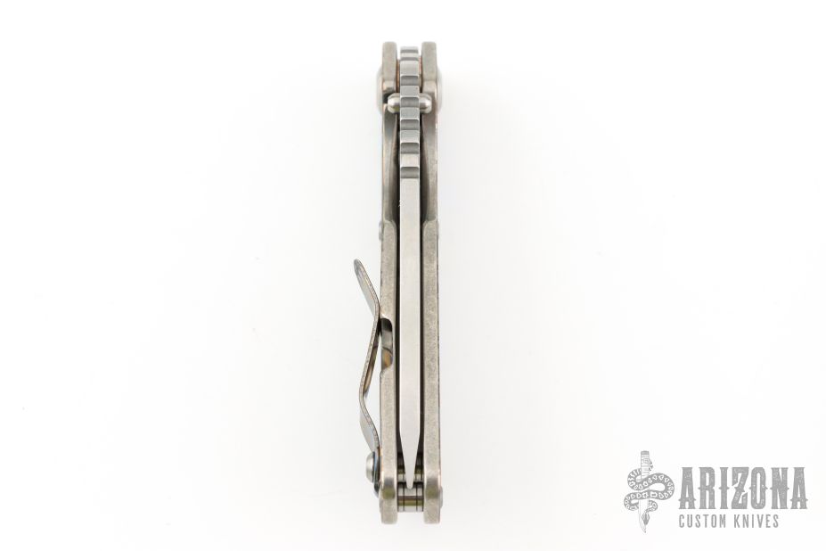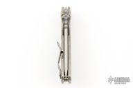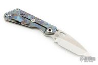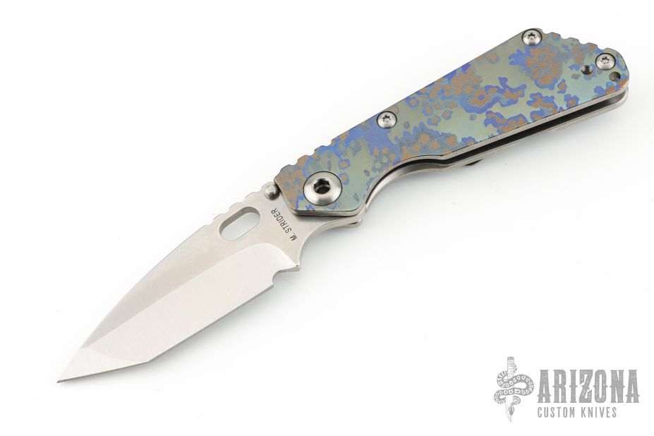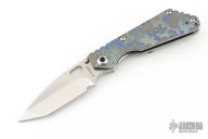 This Mick Strider Performance series SNG framelock folder features a satin finished tanto blade with thumbhole and notched thumbrest. The handle has a Partizan finished titanium frame with titanium clip, tip up carry. Jimping on blade spine. Includes Hinderer "Lock Bar Stabilizer" for maximum reverse lock retention. Excellent lockup, detent, and blade seating. New Condition.