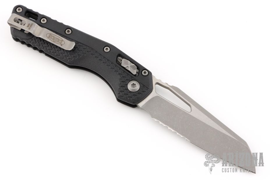 Released in 2023, the MSI (Microtech Standard Issue) is Microtech's first knife to feature its fantastic RAM-LOK technology. This tough take on the crossbar lock features Microtech's signature step pattern made famous by the actuation switches on the Ultratech series. The large blade cutout gives ample room for reverse middle finger flicks as well as standard slow-roll thumb opening with or without gloves. If neither of those is your preference, then simply pull down on the RAM-LOK and the blade flies open with a simple wrist flick. The injection molded handles are smooth and slightly tacky, providing great grip potential in both standard and reverse grips. Rugged, durable, extremely high-value, and made in the USA; we know that the MSI is going to quickly become a fan favorite among all members of the knife community.
