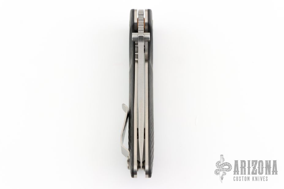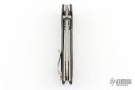 This Spider Monkey Linerlock folder by Southern Grind features a tumble finished tanto blade with dual thumb studs and a notched thumbrest. Handle has fluted carbon fiber scales over titanium liners and barrel spacers, tumbled stainless steel tip up clip, and lanyard hole.  Includes the original box and papers.  #0152.  Excellent condition.
