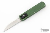 This Zulu Spear by Darriel Caston features a satin finished wharncliffe blade. The handle has a green aluminum frame with stainless hardware and clip. Black push button. Comes with original box. Excellent condition.
