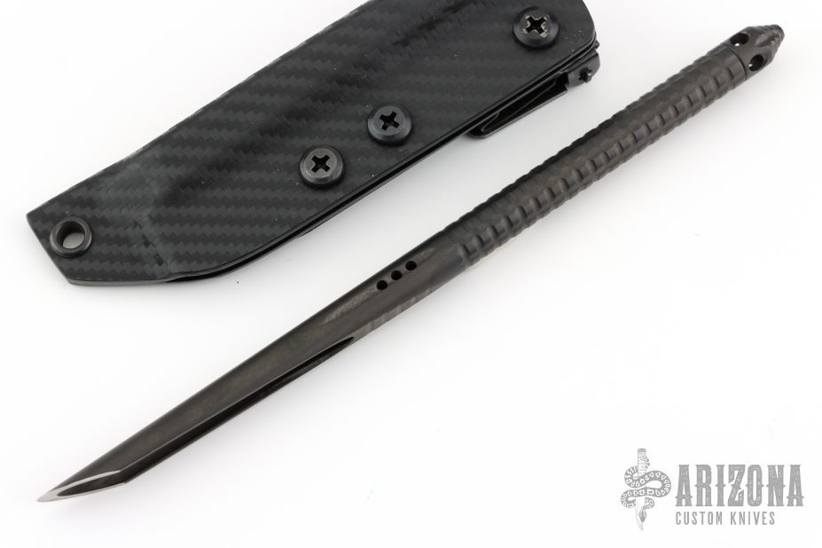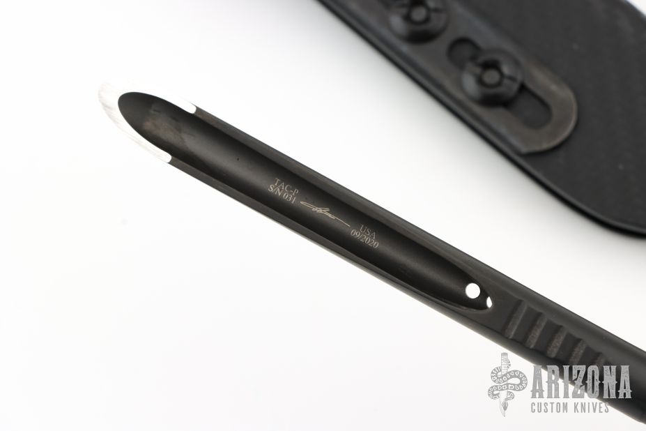 The TAC-P is Microtech's vision of an emergency tool. The kubaton-style design profile is made with 410 stainless steel tubing featuring a frag patterned handle and tactical black DLC finish. The TAC-P is equipped with a proprietary glass breaker, a Kydex sheath, and an Ulti Clip—the most versatile holster clip on the market.