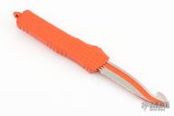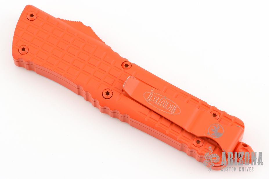 The Microtech Combat Troodon's is one of the largest dual action OTFs (Out The Front) knives available today, the Combat Troodon is the larger version of the Microtech Troodon. Hitting the ruler at almost 10 inches in total length with a 4 inch blade the combat troodon is a formidable battle ready tool, featuring CNC cut jimping on all faces of the handle and a larger slider for easy firing and retracting of the blade while wearing gloves.