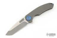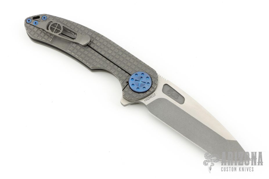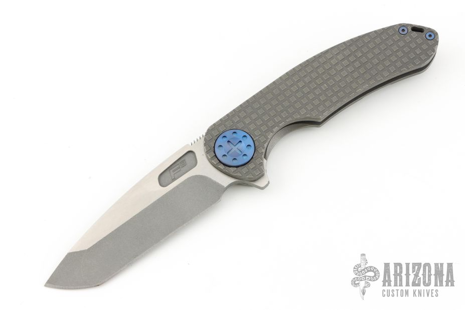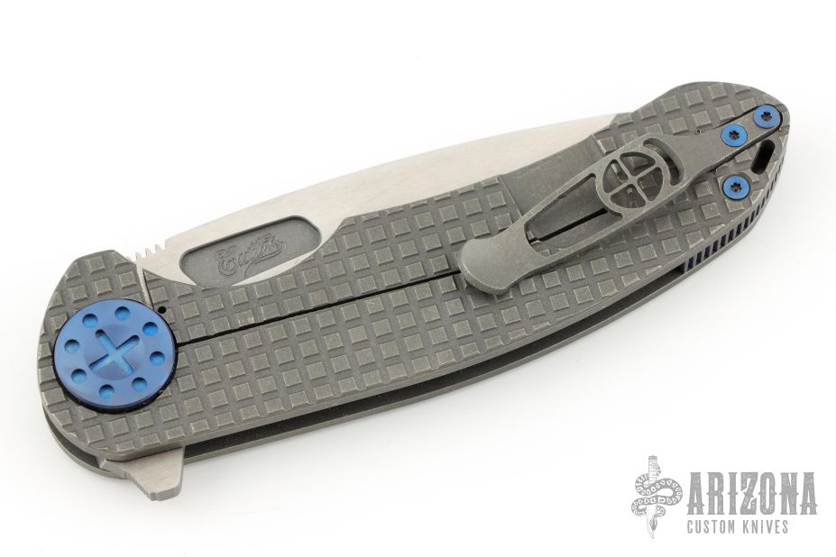 The latest from Curtiss Knives. This F3 Large Flipper Tanto has Frag Mill on the Ti handle, orange peel and anodize finished pivot, matching Hardware, and a 2-Tone Magnacut Blade.