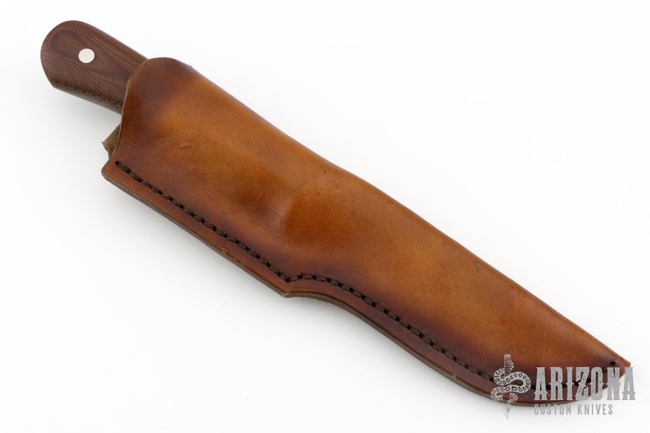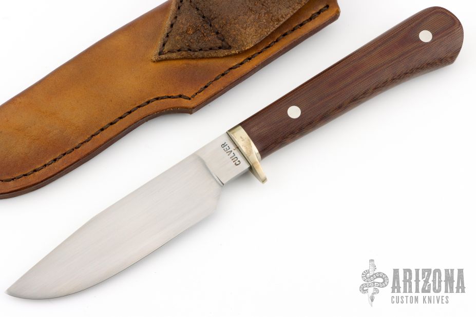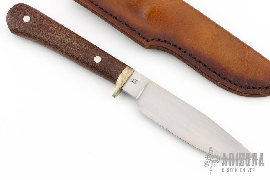 This knife by Master Smith Steve Culver features a hand rub satin finished blade with .189" blade stock and 1.14" blade depth, hidden tang construction. The handle has nickel silver guard, micarta grip with pins. Comes with a zipper case, maker's card, and leather sheath. Excellent condition. The consignor notes this was one of the last knives made with the JS stamp (10/06) and the maker was awarded the MS stamp not long after.