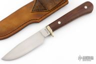 "I started making knives in 1987, sold my first knife in 1989, and passed the American Bladesmith Society's Mastersmith test in 2007. I have been a full time knifemaker since 2004. I am also a Master Gunsmith, but discontinued gunsmithing to devote myself to full time knifemaking. I use 5160, 1084, W-2 or 1095 steel for my forged carbon steel blades. I make damascus steel blades from any of the carbon steels that I typically use, laminated with 15N20 or O-1 steel. I use ATS-34 for the blades and springs of some of my folding knives. Each blade is individually heat treated in my shop. I prefer to use natural materials for most knife handles, but will use manmade materials for severe-duty knives."