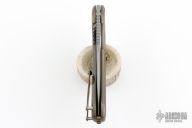 This Bodega 2.0 from Begg Knives features an acid tumble finished blade with notched thumbrest and flipper, .150" blade stock. The handle has milled and anodized titanium scales with a titanium lockbar and tip up clip. Has excellent detent, lockup and blade seating.  Features a ceramic IKBS pivot and a ceramic ball in the clip. Knife is in excellent condition, shows no signs of use, and comes in a padded/zippered case.