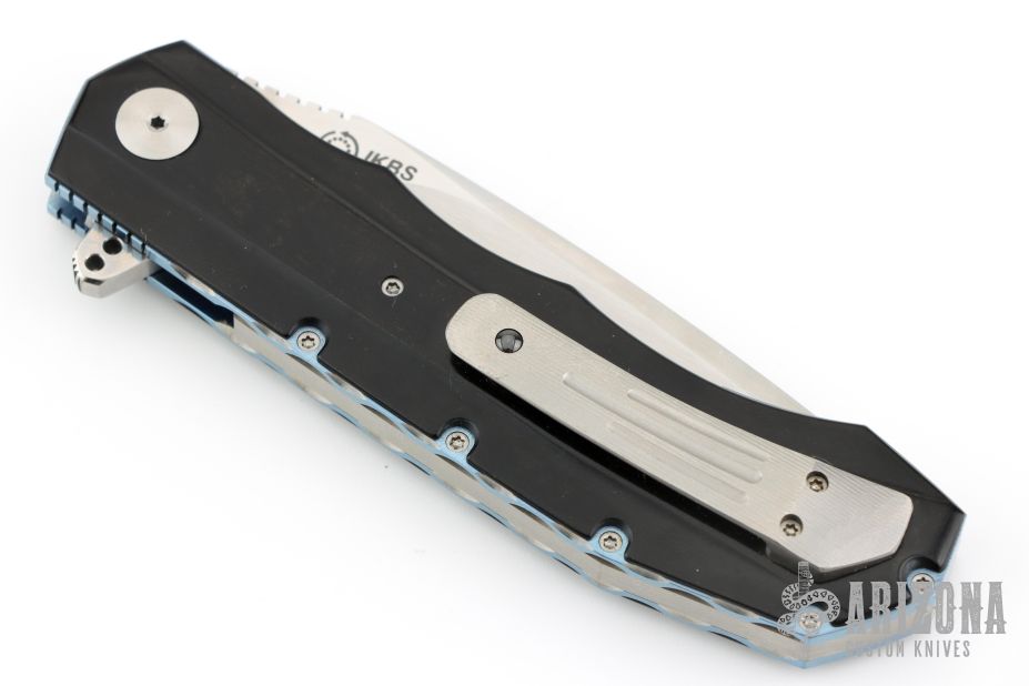This L51-C by Andre Thorburn features a hand rub satin finished blade, notched thumbrest and flipper, false top edge. The handle has G10 scales, anodized titanium liners, steel backspacer, tip up titanium clip. Rides on IKBS  Includes a padded zippered case and COA.  S/N: NY18025.  The COA says the scales are G10, looks like wood to me.  The COA is original.  Excellent condition.
