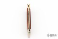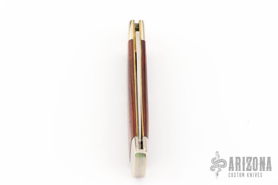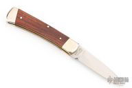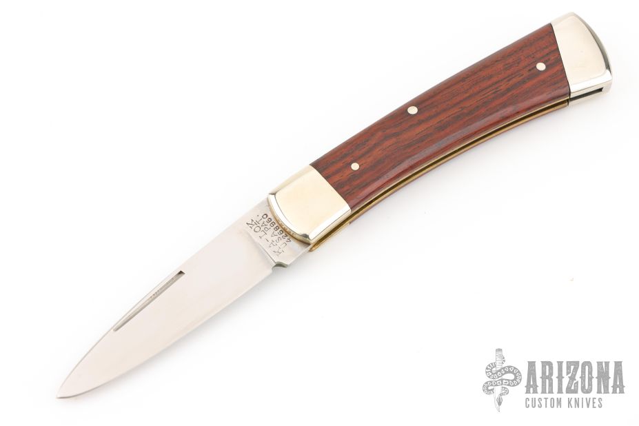 This KA-LOK by Ka-Bar features a polished blade with nail nick. The handle has nickel silver bolsters, cocobolo scales, brass liners, stainless steel backspacer. Comes with original box and papers. Excellent condition. This knife was made post-patent, and is marked US PAT 4268960