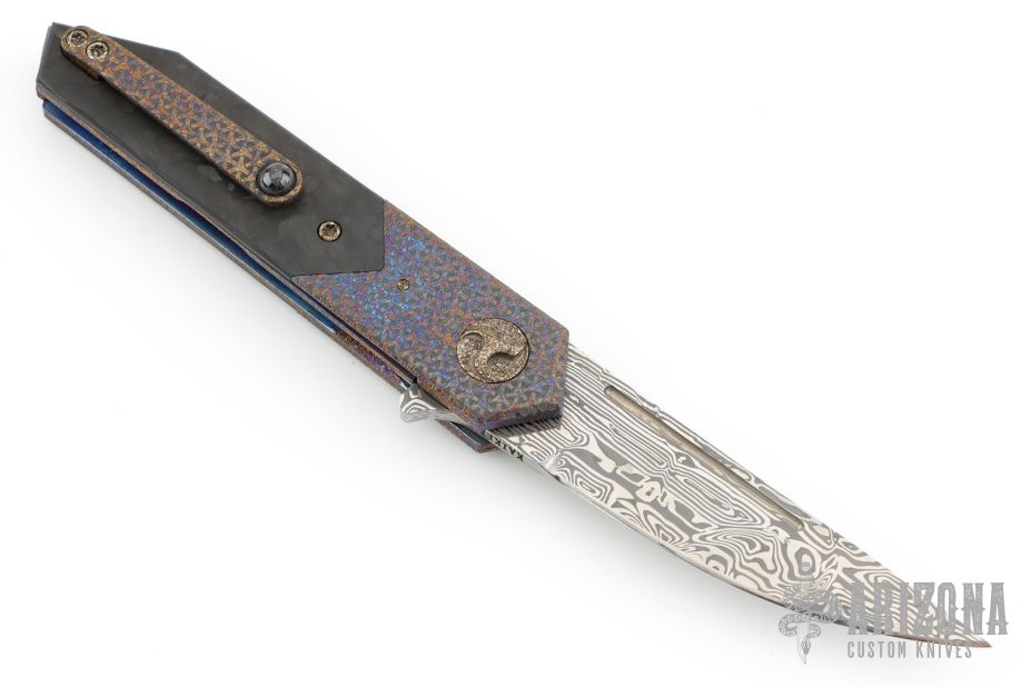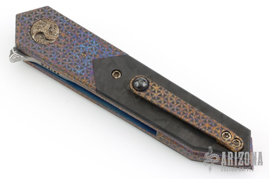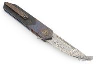 " I was born in Australia and trained as a Jeweler.I have been doing JuJutsu since I was 6 years old and developed my own style in 1990. I have a 7th Dan Black belt. I also study Batto, live sword cutting and have a 3rd Dan. I moved to Japan to live in 1986 and have been creating knives since 1993.In that time I have won many awards including best in show and best art knife at shows in America, Australia and Japan. My work has been published in many magazines in America, Australia, France, Italy, Japan and Russia. I do all the work myself, but I don't make my own steel. I prefer to use Damasteel, ZDP-189, VG-10 and ZDP-189 VG-10 san mai. Anything that looks like gold on my knives is either 18k or 24k gold. I like to use rare materials such as mammoth tusk, titanium, gold, silver and many others. Each knife that I create is a one of a kind and a work of love which I hope will survive the passing of time for many, many generations. That is why I use materials that are impossible to or very resilient to rust. My knifes often tell a story and have a Japanese theme to them. Probably a combination of my love of Japan, its history, mythology and the 35 years that I have been here in Japan. I also like to hide many interesting things on my knives as part of the voyage of discovery of my art."
