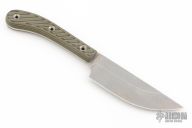 This Galley Rat by Swamp Rat Knives features a stonewashed blade and black/green G-10 scales, .090" blade thickness and 1.224" blade depth, full tang construction. New from maker.