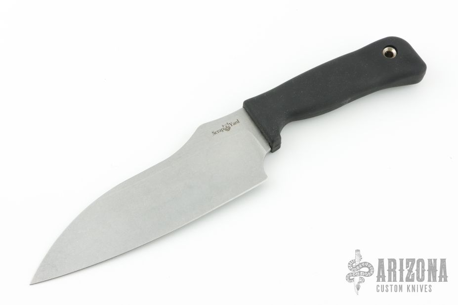 This Alpha Chef 6.5" by Scrapyard features a stonewash finished blade .111" blade stock and 2.152" blade depth, hidden tang construction. The handle is black Res C with a lanyard hole. New from maker.