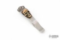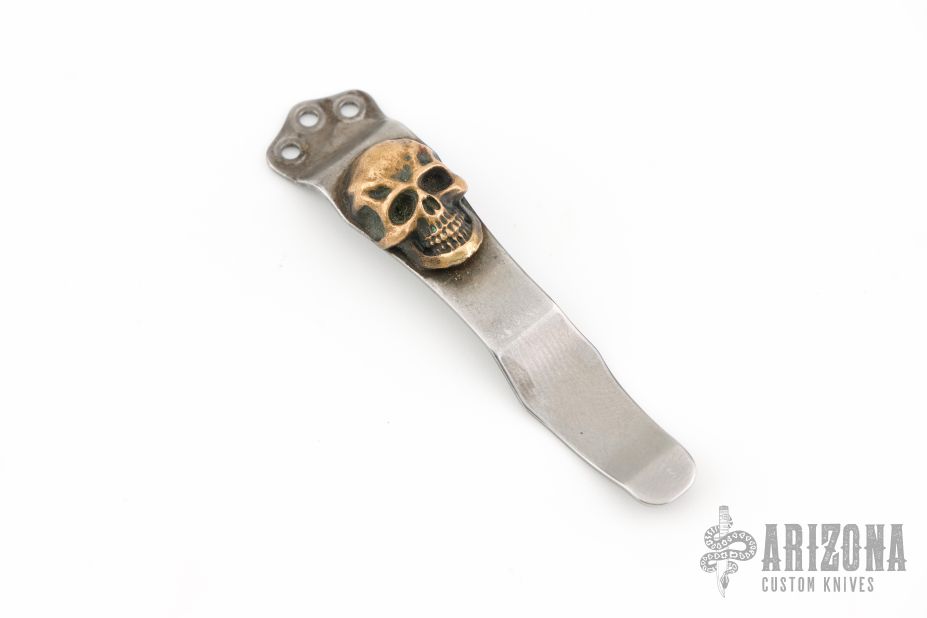 Brass Darkness Skull Stainless Steel Clip by Steel Flame. Signed "Obatake" and dated 2011. Has some light scratches, otherwise excellent condition.