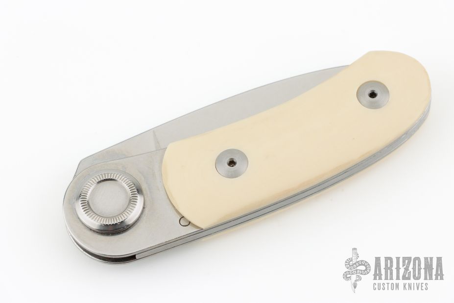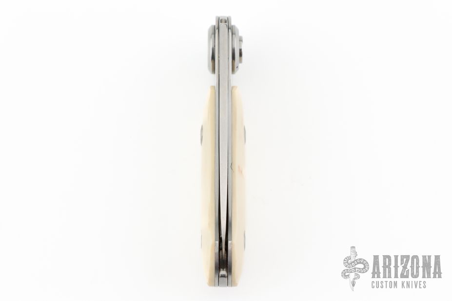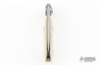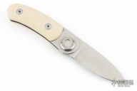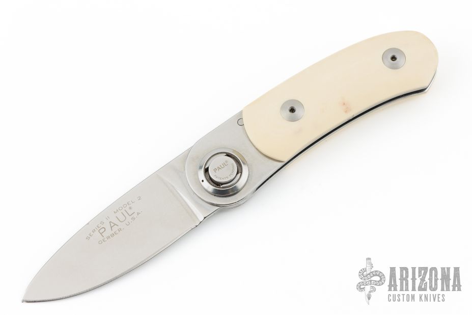 Made by Peterson Precision Engineering and marketed by Gerber, the Paul knife was introduced in 1996 and discontinued in 1997 with a total run of about 23,000. This folder has an axial locking mechanism and a handle scale of ivory paper micarta. This knife was assembled by hand. Has some scuffs and scratches, great condition otherwise.