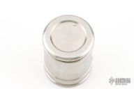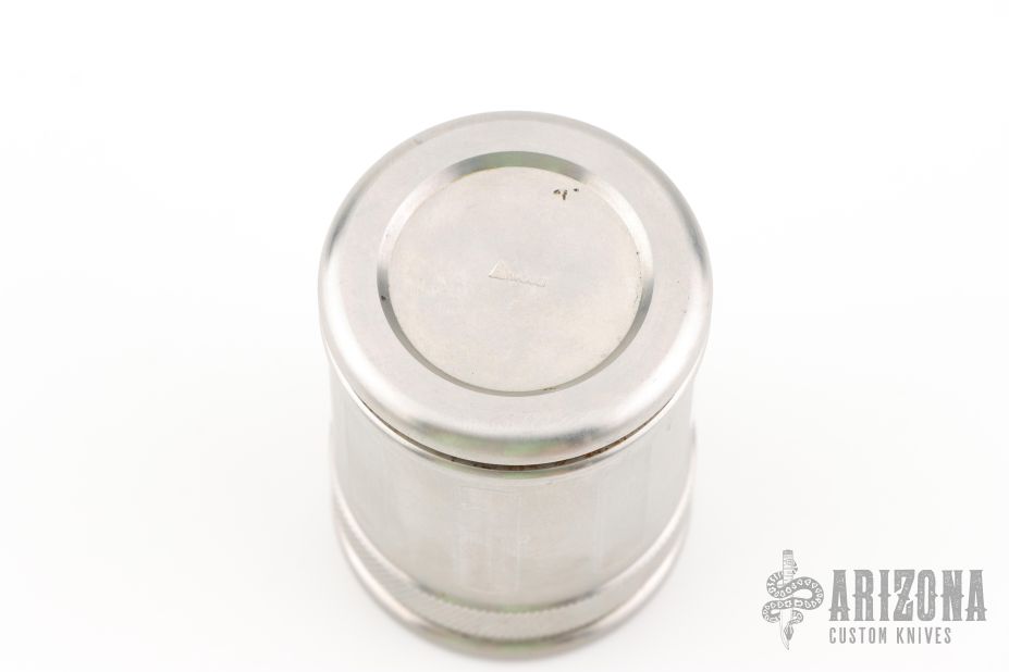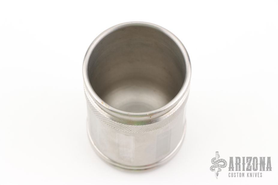 "Turned from a solid two inch bar of 303 stainless steel, the BigShot can truly be called a drinking tool. With a generous three fluid ounce capacity it is the perfect size for an ice cube and a splash of your favorite libation. And weighing in at nearly half a pound these mighty vessels give new meaning to the term "heavy drinking"! Dishwasher safe and made to last virtually forever." Has some scratches, otherwise excellent condition.