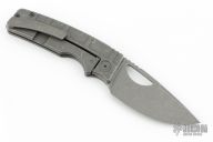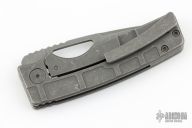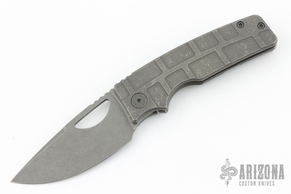This knife by the OZ Machine Company features a tumbled Elmax blade with thumbhole and notched thumbrest. The handle features a MAG milled titanium frame with a titanium backspacer and tip up pocket clip with hidden screws. Includes box and papers dated 7/14/25 and s/n 4255. Excellent condition.