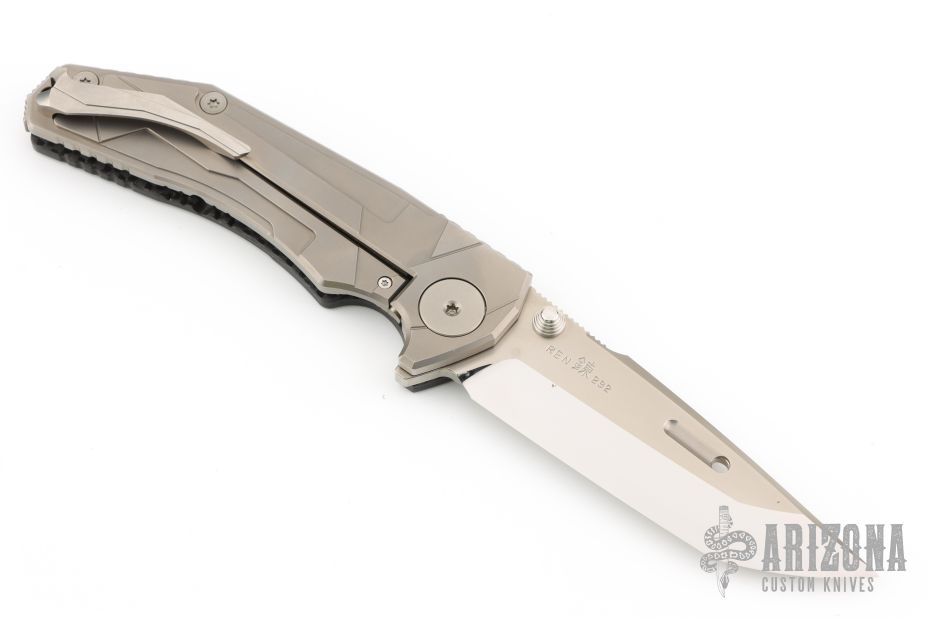 The REN model looks like it will be a winner to comes from the famed Japanese knifemakers. The blade shape is a "Tanto-Honzukuri" or a "Tanto-convex" blade shape. As you know, they are making to the "Tanto" blade shape with the CHI model but this blade shape is "Tanto-Shinogizukuri". That means straight grind. There are only a few knife makers who make this kind of blade shape but, we have never seen a "Tanto-Honzukuri" with mirror polished surface. The handle is a combination of carbon fiber for the presentation scale with a titanium frame lock allowing for excellent weight and balance. It may not look like a Rockstead but we expect the REN to be one of the best performing knives produced anywhere in the world. Includes the Original box and papers #292. Excellent Condition.