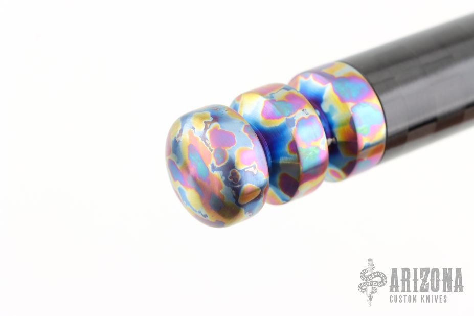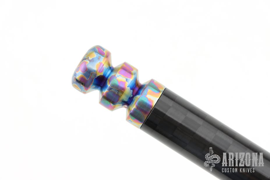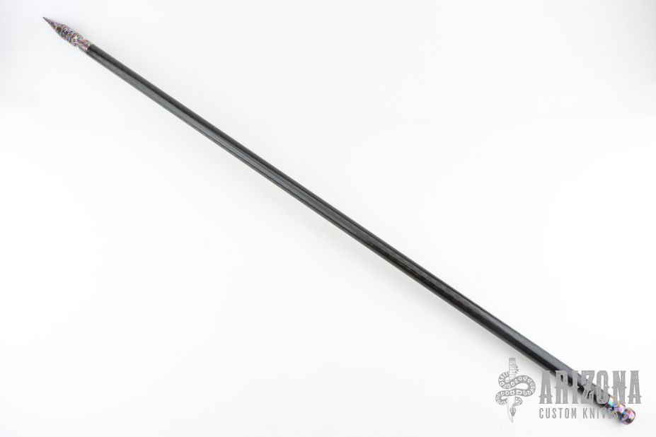 This handcrafted Titanium and Carbon Fiber spear by Pavlin Shahanov features a flamed finish spike and cap with Carbon Fiber haft. New from maker!