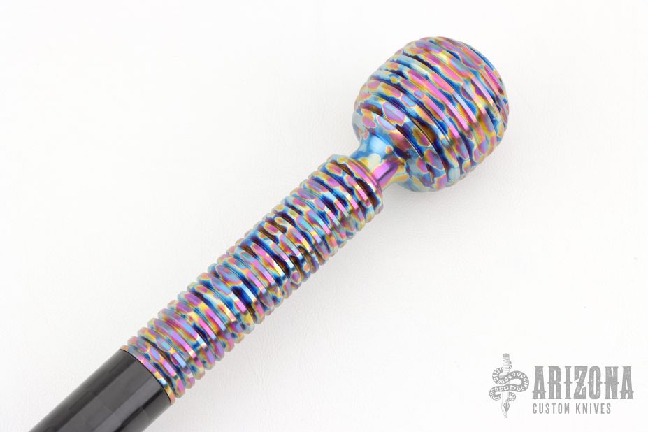 This handcrafted Titanium and Carbon Fiber cane by Pavlin Shahanov features a flamed finish head and cap with Carbon Fiber haft. New from maker!
