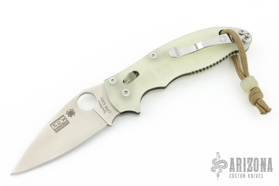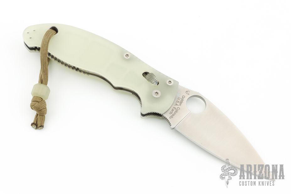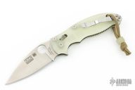 This axis-lock Manix 2 Moonglow from Spyderco features a satin finish, plain edged blade with SpyderHole and notched thumbrest. Contoured glow-in-the-dark MoonGlow scales. Three screw pocket clip is adjustable for ambidextrous left or right hand carry. Excellent condition.